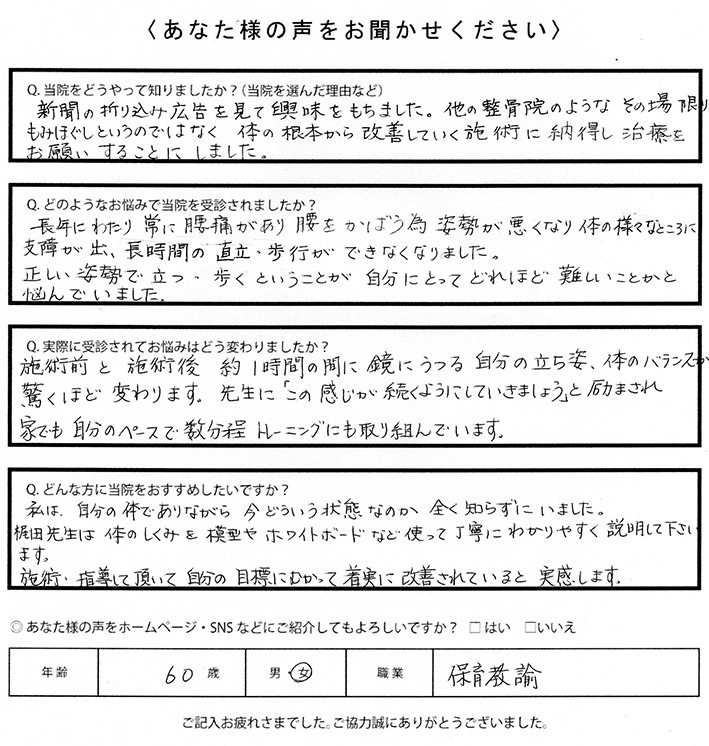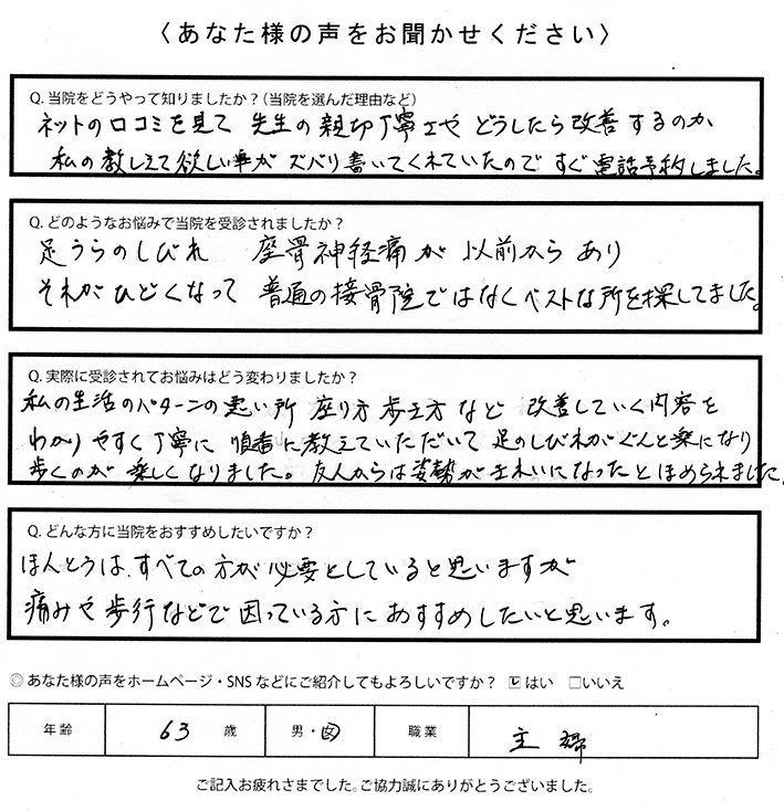 当院に来られて改善しました。