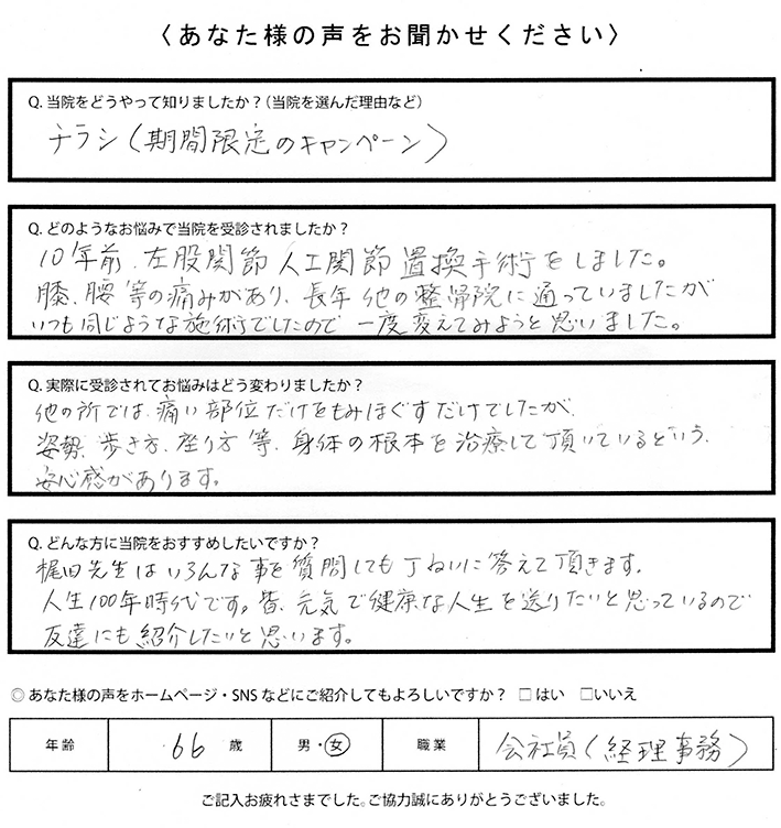 患者様感想人工股関節