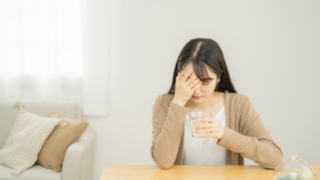 季節の変わり目は自律神経が乱れてめまいや頭痛、不眠や痛みなどの症状が起こりやすいです。そんなときは当院に相談ください。悩んでいる女性の画像を載せています。